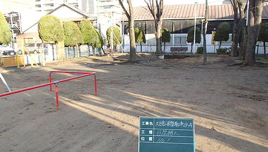 施工事例 久古見公園 日陰棚設置 Before After 中道公園複合遊具取替え Before After 貴船小学校防球フェンス Before After R4B3 ネットフェンス 張コンクリート Before After 冨田山公園スケートパーク Before After R6CM1 反射鏡 Before After